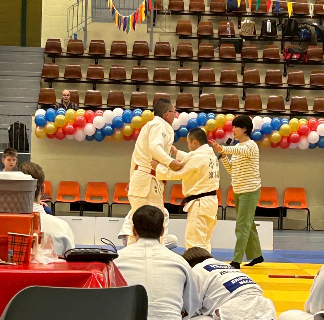 この大会ではID柔道選手による形大会も実施され、大会全体では10ヵ国・地域から415名の参加がありました。また障がいの程度に応じて「(両者片膝たちで)寝技から開始する」など、選手の特性に配慮した試合形式も導入されました。試合の前日には指導者による講習会も行われ、濵名氏によるID柔道選手に対する指導法の紹介も行われました。