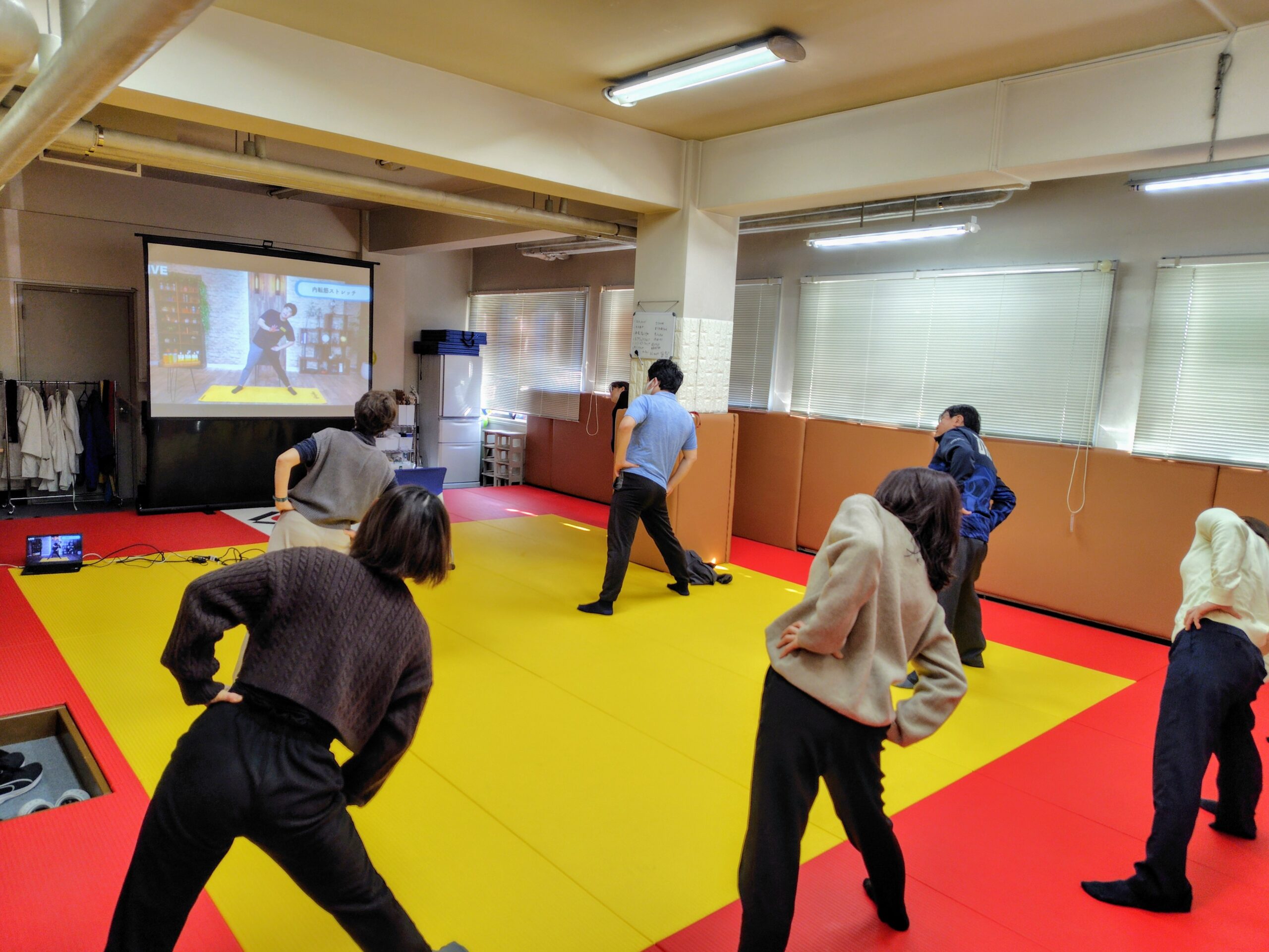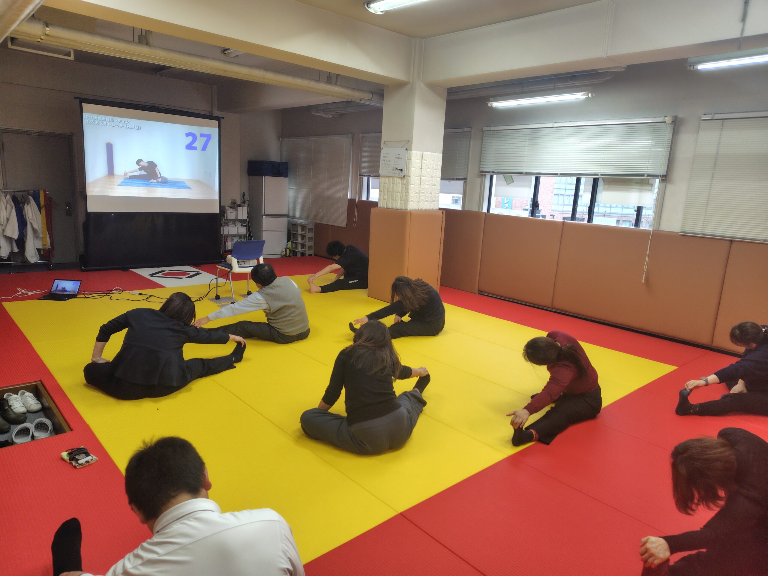 自前の柔道場において、大塚製薬㈱様が提供する「Start up today!」を活用してオンライン朝活(ストレッチやトレーニング等)を実施しました。その以外の時期においても、隔週水曜日の朝にストレッチ等の朝活を実施しました。