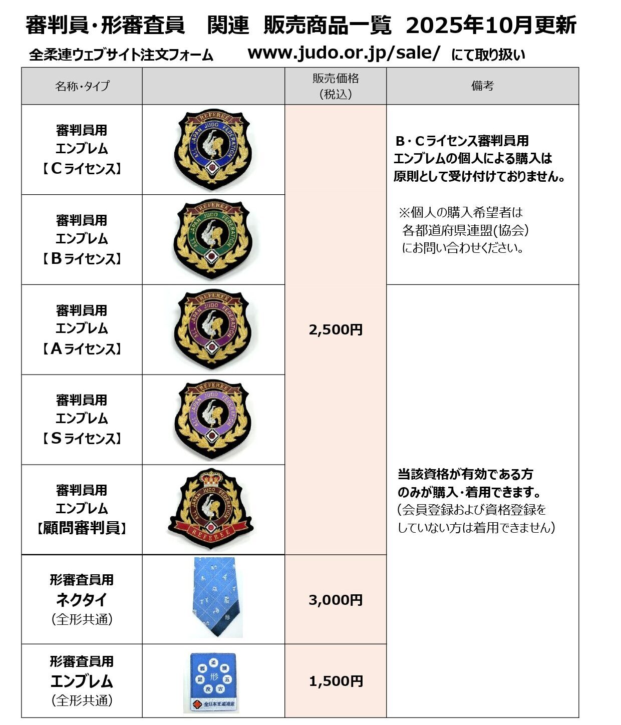 2025年11月1日受注分よりエンブレム、ネクタイ類の価格を変更させていただきます。