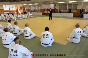 趣旨 全日本柔道連盟では、柔道普及のために「二つの方向性」を掲げている。一つは間口の拡大で、これまで柔道の経験のない人に柔道に取り組んで貰おうという趣旨である。もう一つは奥行の拡張で、柔道経験のある人にできるだけ長く柔道を続けて貰おう、一度柔道から離れてしまった人に戻ってきて貰おうという趣旨である。寝技は立技に比べて取り組みやすい面があり、初めて柔道をする人やもう一度柔道をする人が寝技を入口とするという方法も考えられる。また、立技をすることが厳しくなってきた人が寝技なら続けられるという局面も想定できる。寝技は立技より軽視される嫌いがないとも言い切れない中で、今般寝技錬成会を開催し、寝技に関して一層の興味喚起を図らんとするものである。